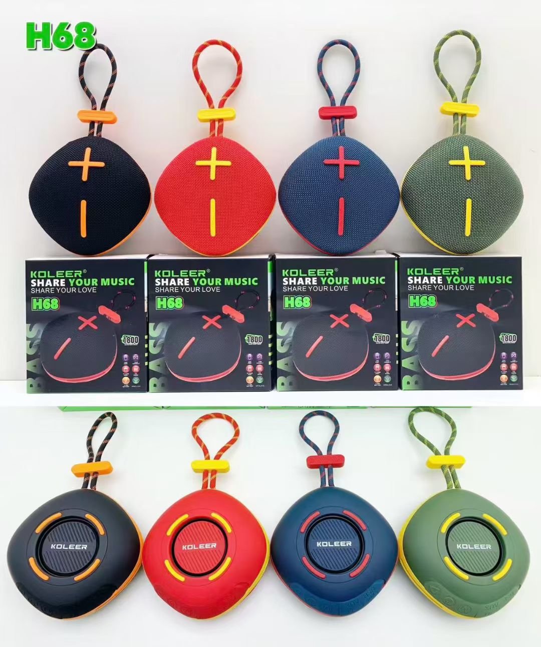The Koleer H68 Portable Bluetooth Speaker is a powerful and compact wireless speaker built for outdoor use, parties, travel, and everyday entertainment. It delivers 10W clear sound output, features Bluetooth 5.3 for faster and more stable connectivity, and comes with a high-capacity 1800mAh rechargeable battery